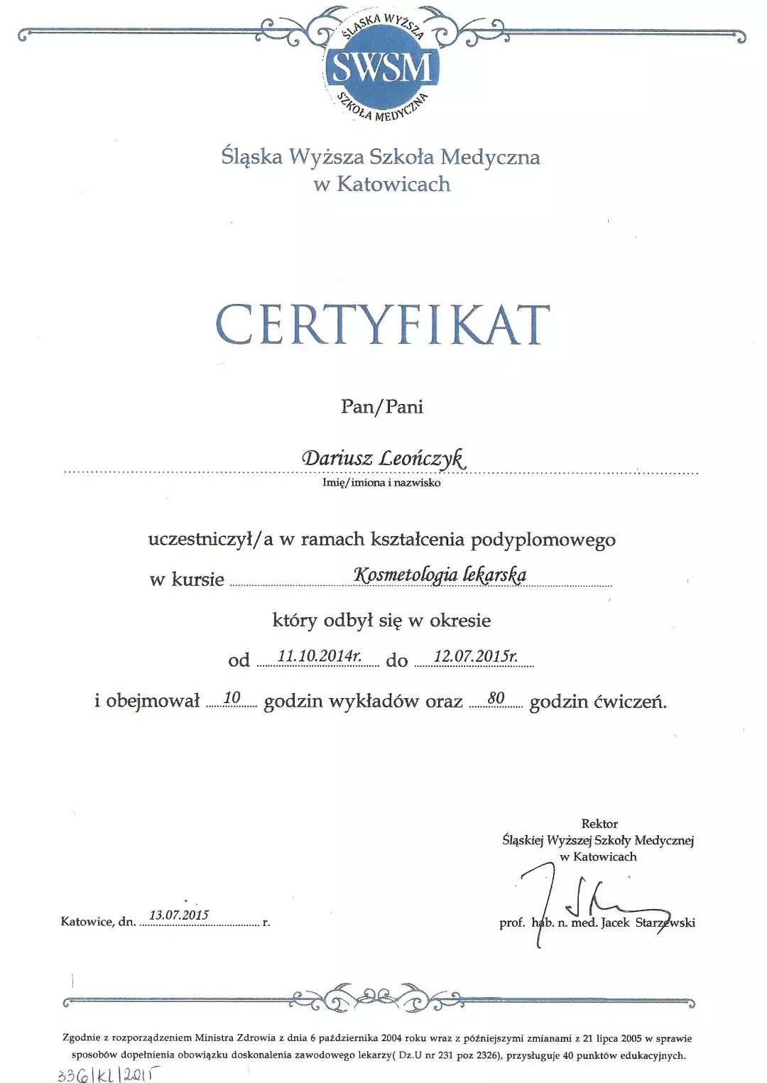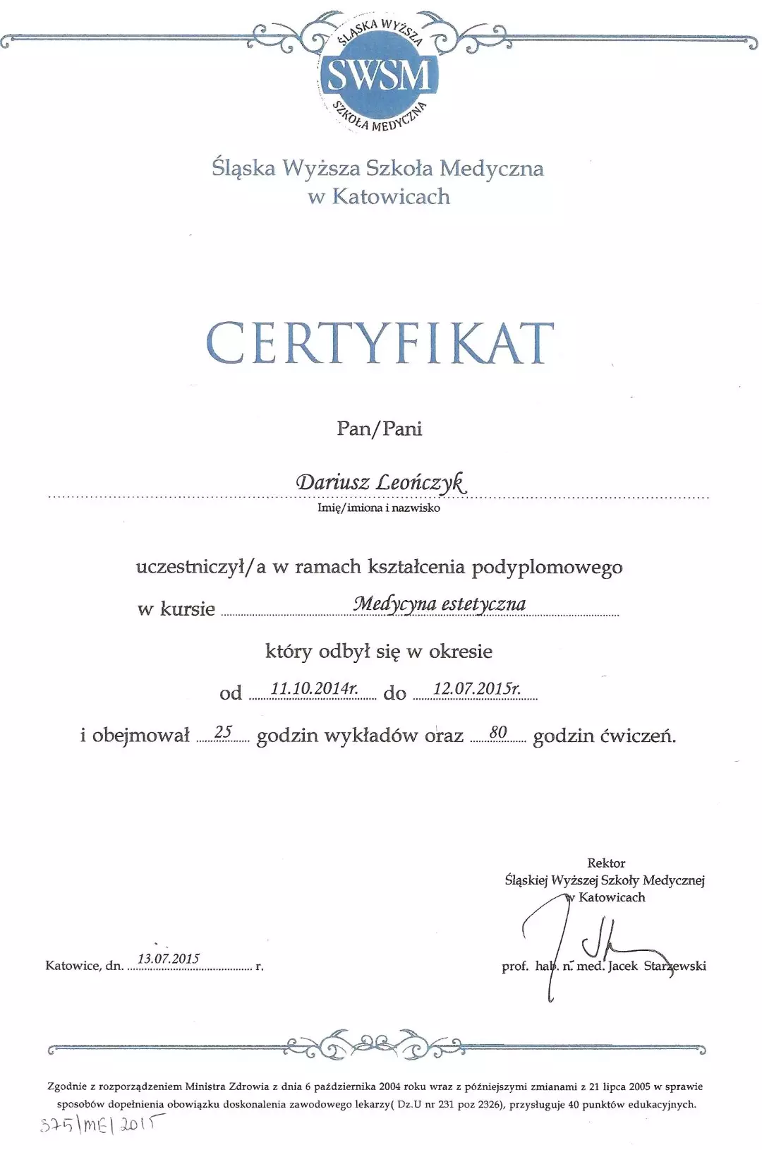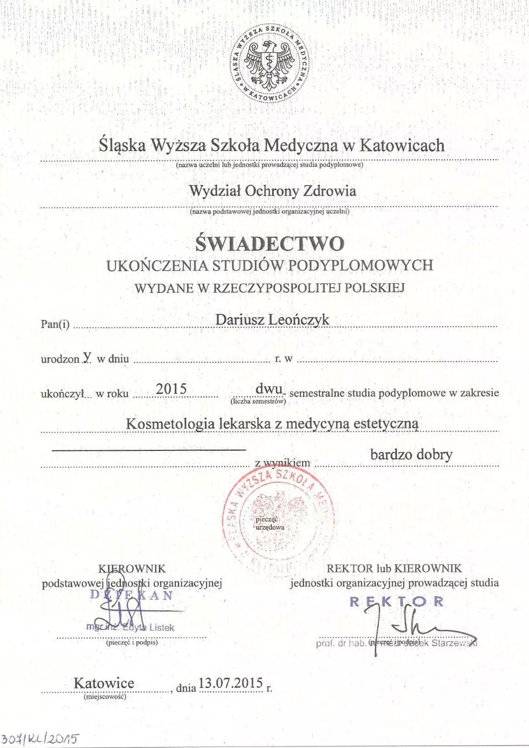 Absolwent Śląskiej Wyższej Szkoły Medycznej na kierunku medycyna estetyczna w 2015 roku. Lekarz wielu specjalizacji. Autorytet w dziedzinie medycyny estetycznej.