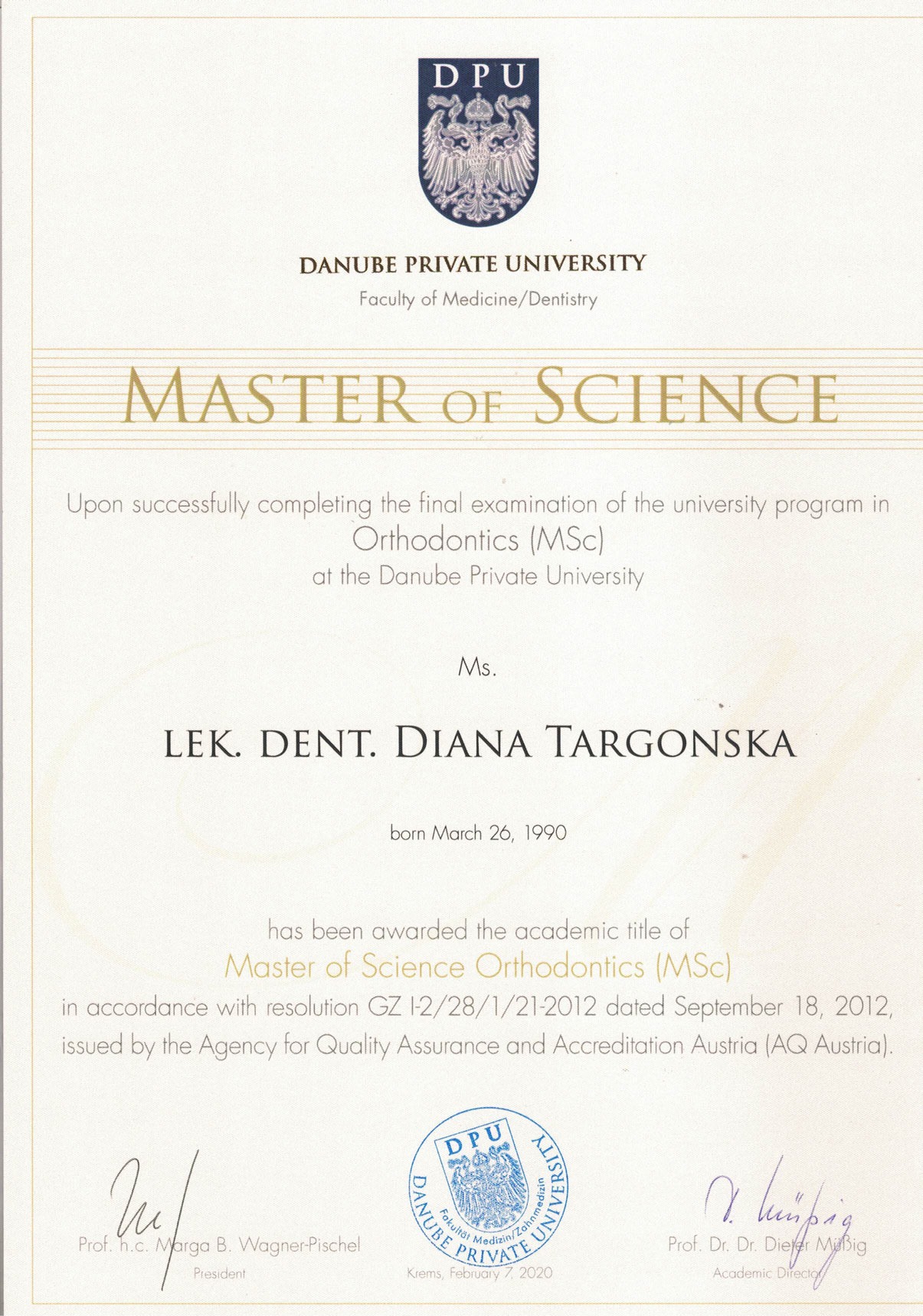 w Austrii uzyskując międzynarodowy tytuł Master of Science in Orthodontics. Nieustannie rozwija swoją wiedzę