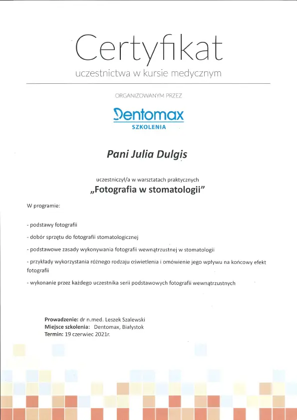Certyfikaty: