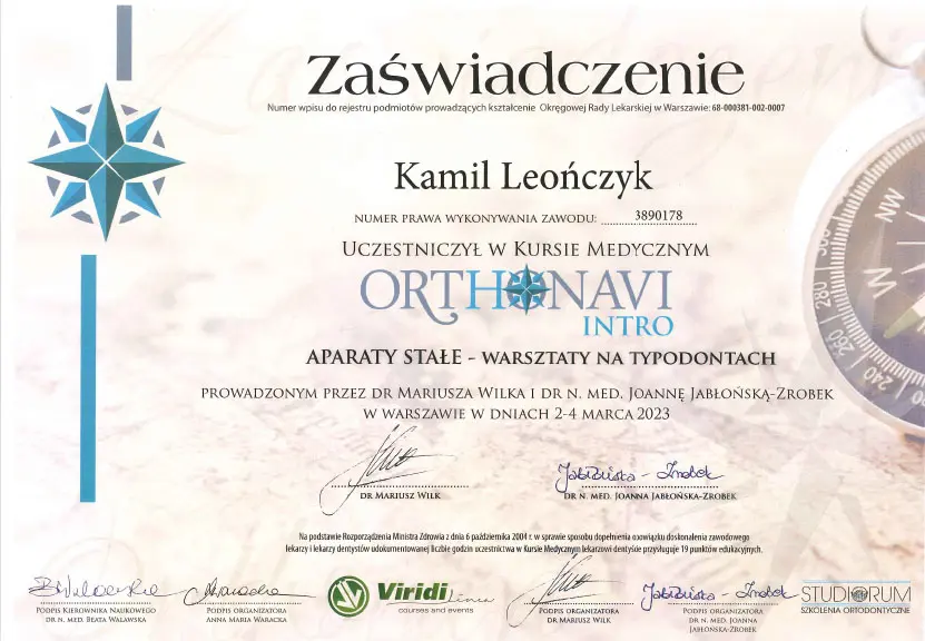 Master of l.l. in Orthodontics and Dentofacial Orthopedics, Athenea Dental Institute uniwersytet San Jorge w Barcelonie.
